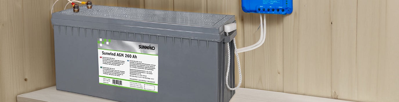 Sunwindin AGM-akut ovat kestäviä ja huoltovapaita. AGM-teknologi (Absorbent Glass Mat) tarkoittaa, että elektrolyytti on imeytetty lasikuitumattoihin, minkä ansiosta akku on tiivis ja turvallinen käytössä. Akuilla on alhainen itsepurkautuminen (noin 2 % kuukaudessa) verrattuna perinteisiin lyijyakkuihin, hyvä latausvastaanottokyky sekä pitkä käyttöikä kohtuullisessa käytössä. Tämä tekee niistä ihanteellisia vapaa-ajan asuntoihin, veneisiin ja matkailuautoihin, joissa halutaan yksinkertainen ja toimintavarma akkuratkaisu ilman säännöllistä huoltoa.