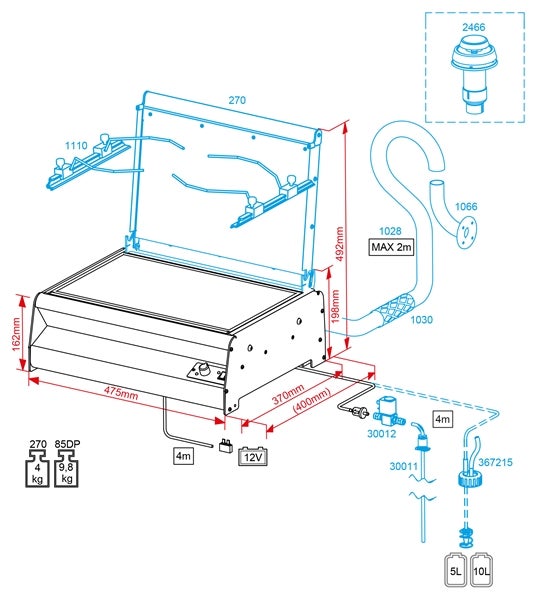 Hinta sisältää lämpöpuhaltimen kannen ja lämpöpuhaltimen kannen asennussarjan. Keittotaso ja keittotason asennussarja myydään erikseen.